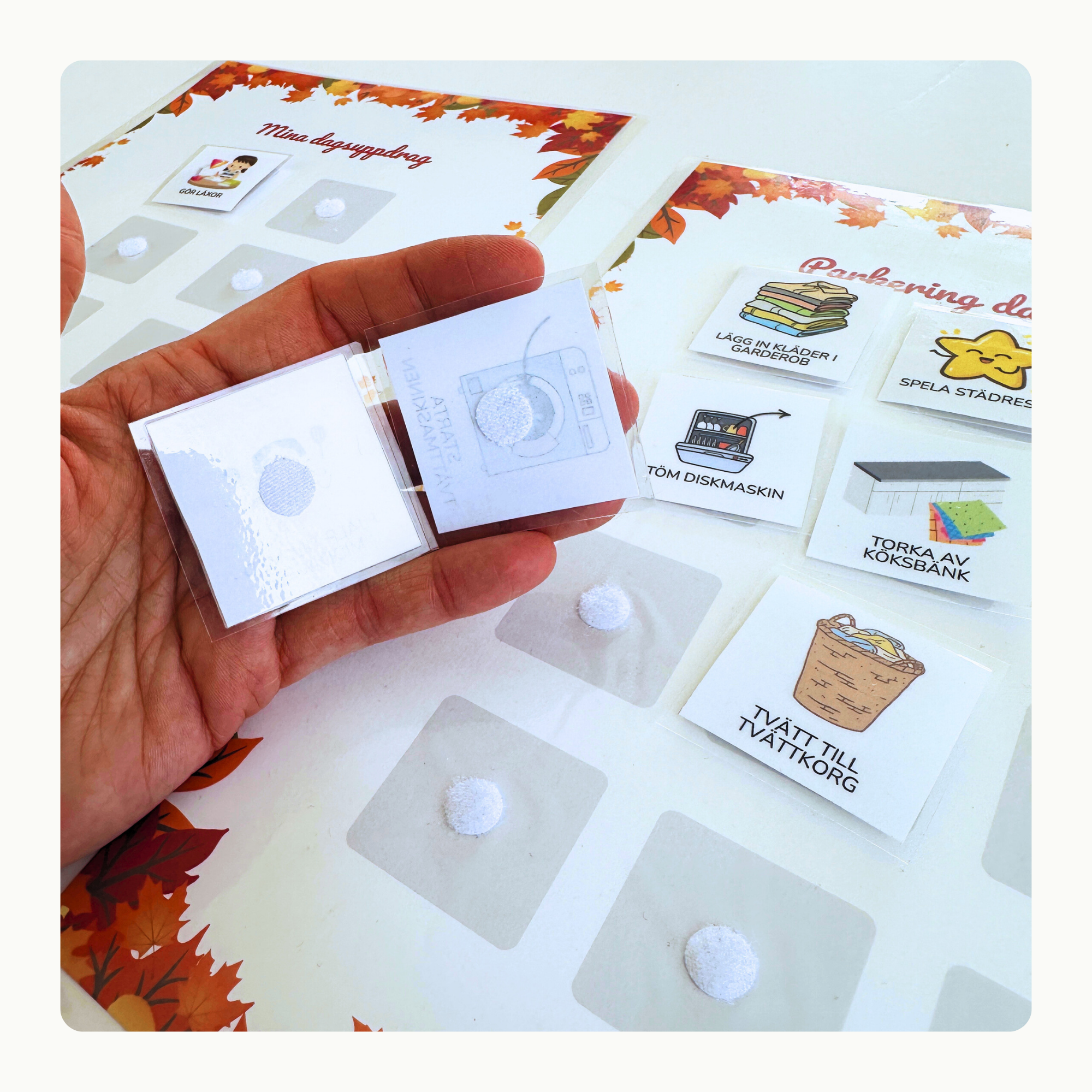 - Välj de kort som passar för dagen eller veckan.