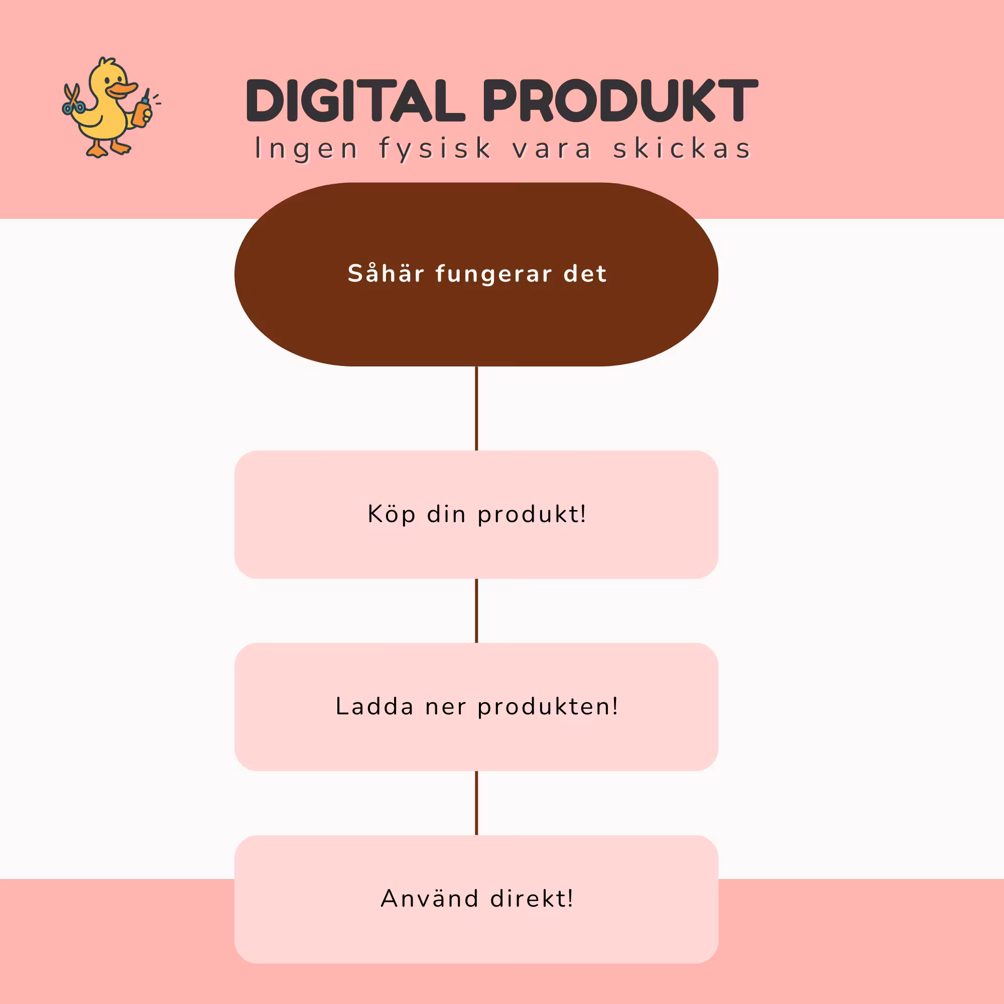 Detta är en digital produkt (PDF) som levereras direkt till den e-postadress du anger vid köp. Ingen fysisk vara skickas. Du har tillgång till filen i 30 dagar efter köpet, så ladda gärna ner den direkt.