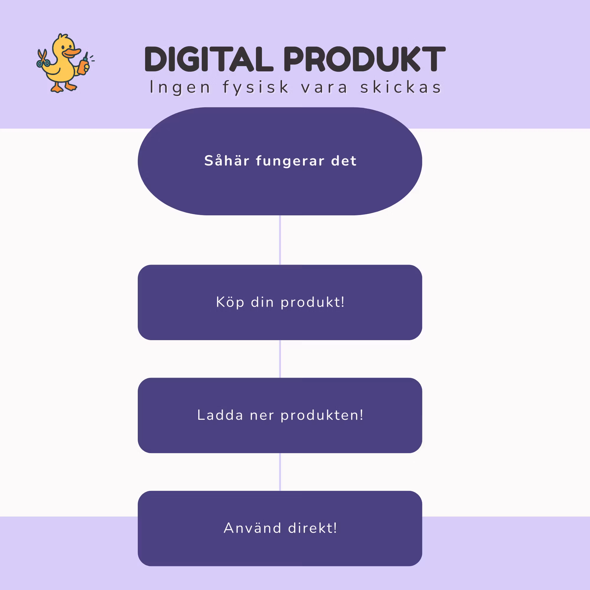 Detta är en digital produkt (PDF) som levereras direkt till den e-postadress du anger vid köp. Ingen fysisk vara skickas. Du har tillgång till filen i 30 dagar efter köpet, så ladda gärna ner den direkt.